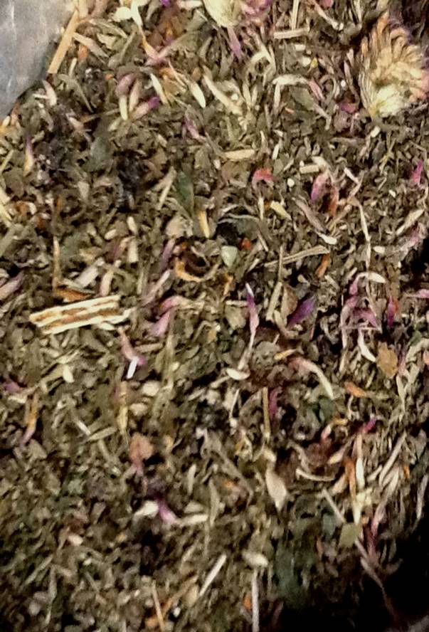 Red Raspberry Leaves, Hyssop, Rose Petals and Thyme. This