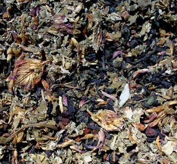 Elderberries, Thyme, Sage and Rose Petals. This warming blend