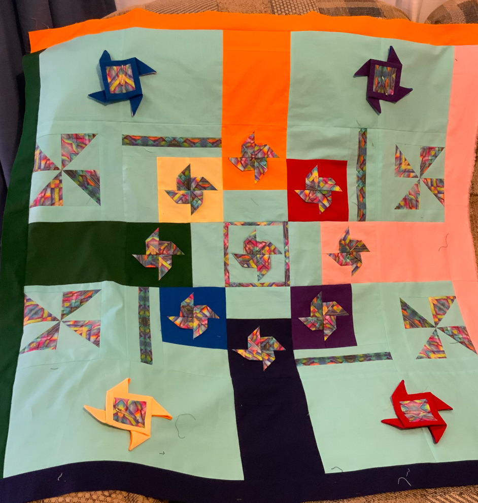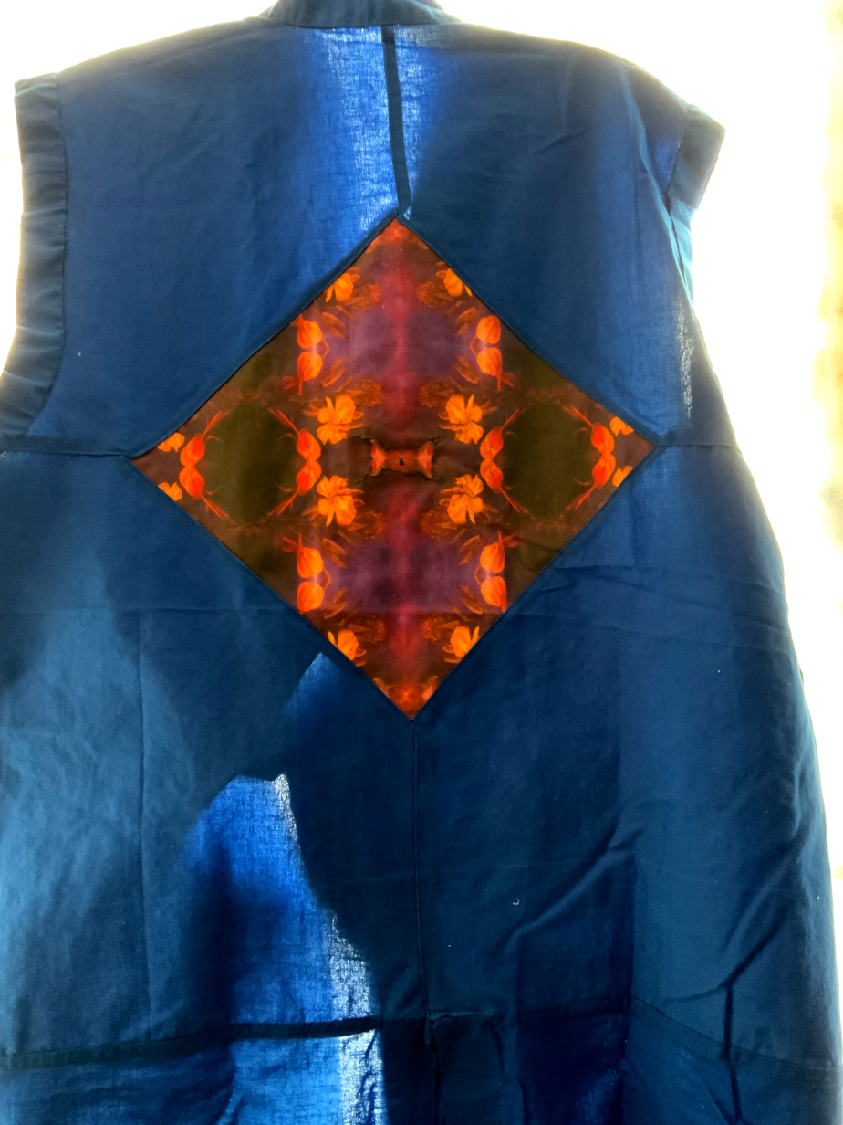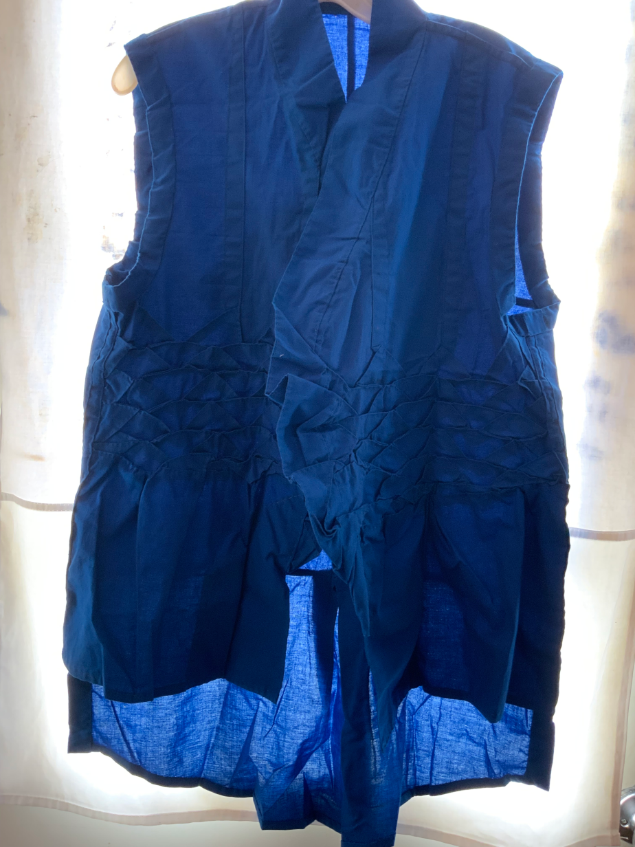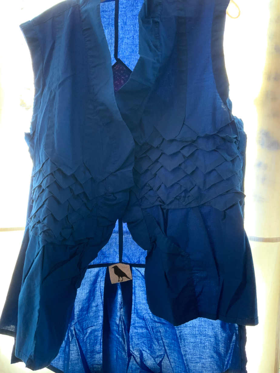 Blue Vest reverse back with a Harper's Star pleat with Hummingbird